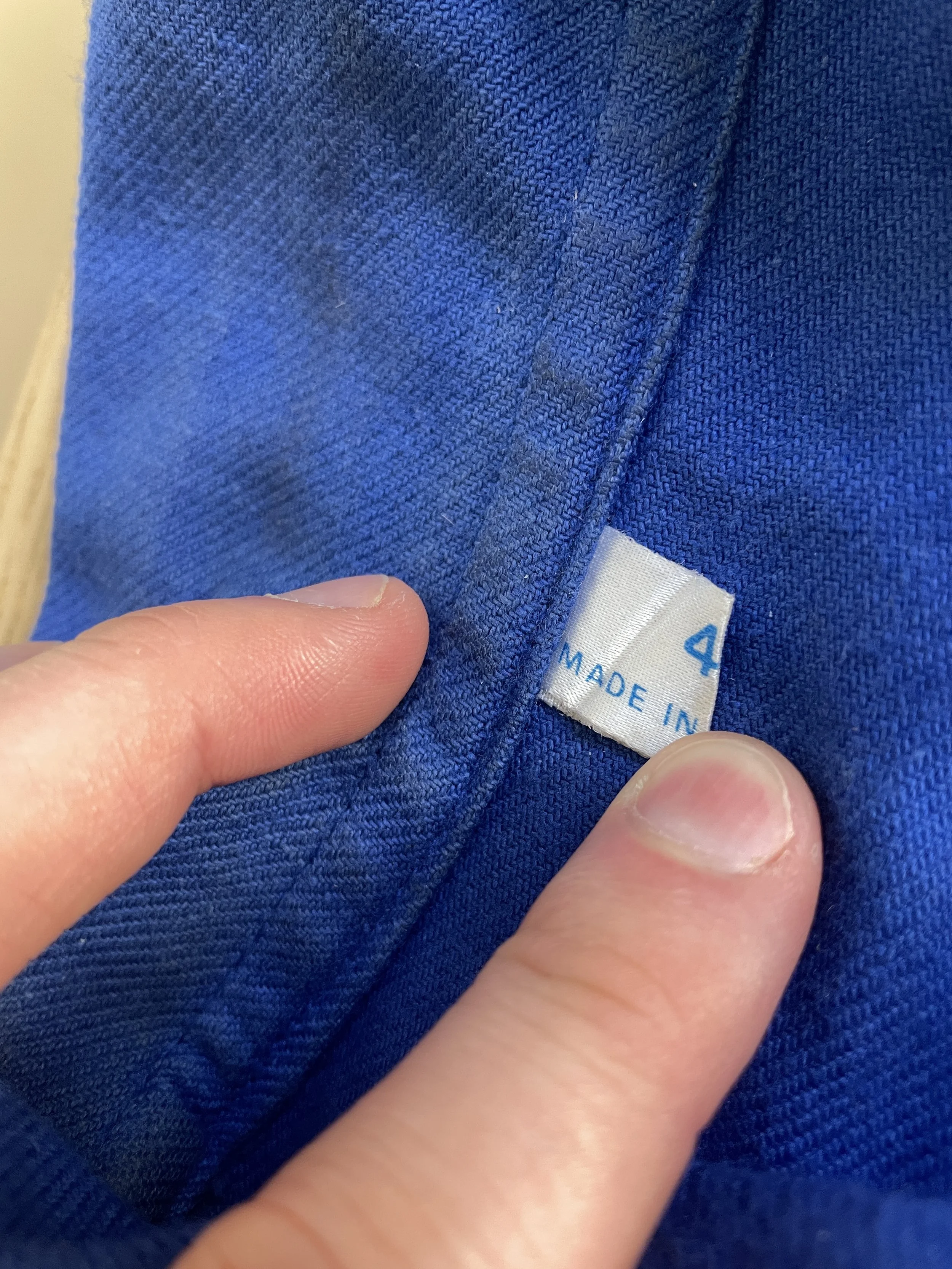 If there’s no care label or instructions, it’s likely from before the ‘70s. Basic care or fiber content labels showed up in the late ‘70s and became standard in the ‘80s and beyond.